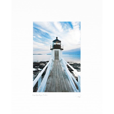 Le phare de Marshall Point balise l'entrée du port de Port-Clyde dans le Maine depuis 1832. Sa jolie tourelle est reliée à la terre par une petite passerelle en bois, où une maison de type néocolonial abrite le gardien. C'est le décor parfait pour une invitation au voyage entre ciel et mer.