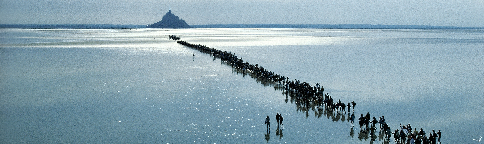 Le Mont et sa baie sont inscrits au Patrimoine Mondial de l’Unesco depuis 1979. La procession de la Saint Michel était un pèlerinage accompli par la plupart des rois de France, jusqu'à la fin du XVIème siècle. De nos jours, la tradition est perpétuée le jour de la Saint Michel. A marée descendante, lorsque les pèlerins se dirigent en procession vers le Mont, il reste encore suffisamment d’eau sur le sable pour qu’un jeu de miroir se dessine sur la baie teintée de bleu. Une belle manière d’aller à la rencontre du Mont !