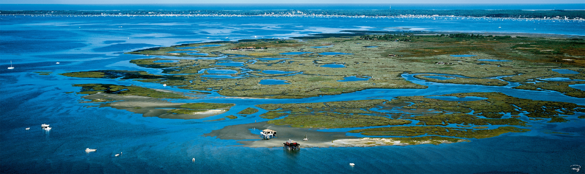 L’île aux oiseaux et ses cabanes tchanquées (échasse en gascon) sont les emblèmes du bassin d’Arcachon. Autrefois utilisée par les habitants du bassin pour venir faire paître leurs troupeaux de vaches et de chevaux, l’île aux oiseaux est devenue un univers sauvage, entre ciel et mer, entre terre et eau. Elle sert de refuge à de nombreuses espèces d’oiseaux migrateurs et est entourée de parcs ostréicoles. Sa superficie varie selon les marées : de 300 hectares à marée haute à 3000 ha à marée basse.