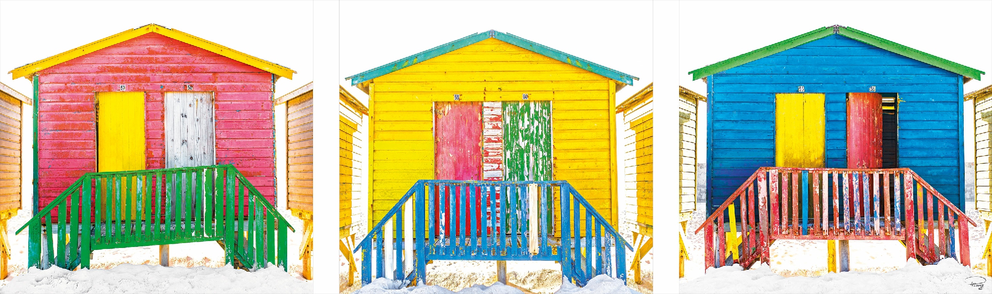 Les cabanes colorées de la plage de Muizenberg, près du Cap, en Afrique du Sud, sont posées sur le sable blanc comme autant d’invitations aux vacances ! Les seules couleurs utilisées sont le jaune, le rouge, le vert et le bleu, et pourtant chaque cabane est différente. Une composition propre à chaque propriétaire, comme un tableau, qui leur donne une personnalité, un caractère, un charme, une présence.