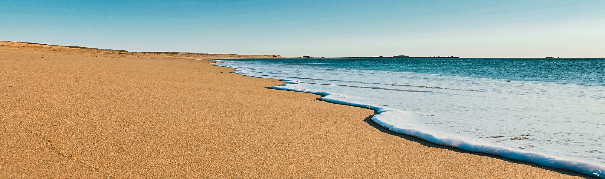 La plage d'Erdeven, dans le Morbihan, brille dans la lumière de fin de journée.