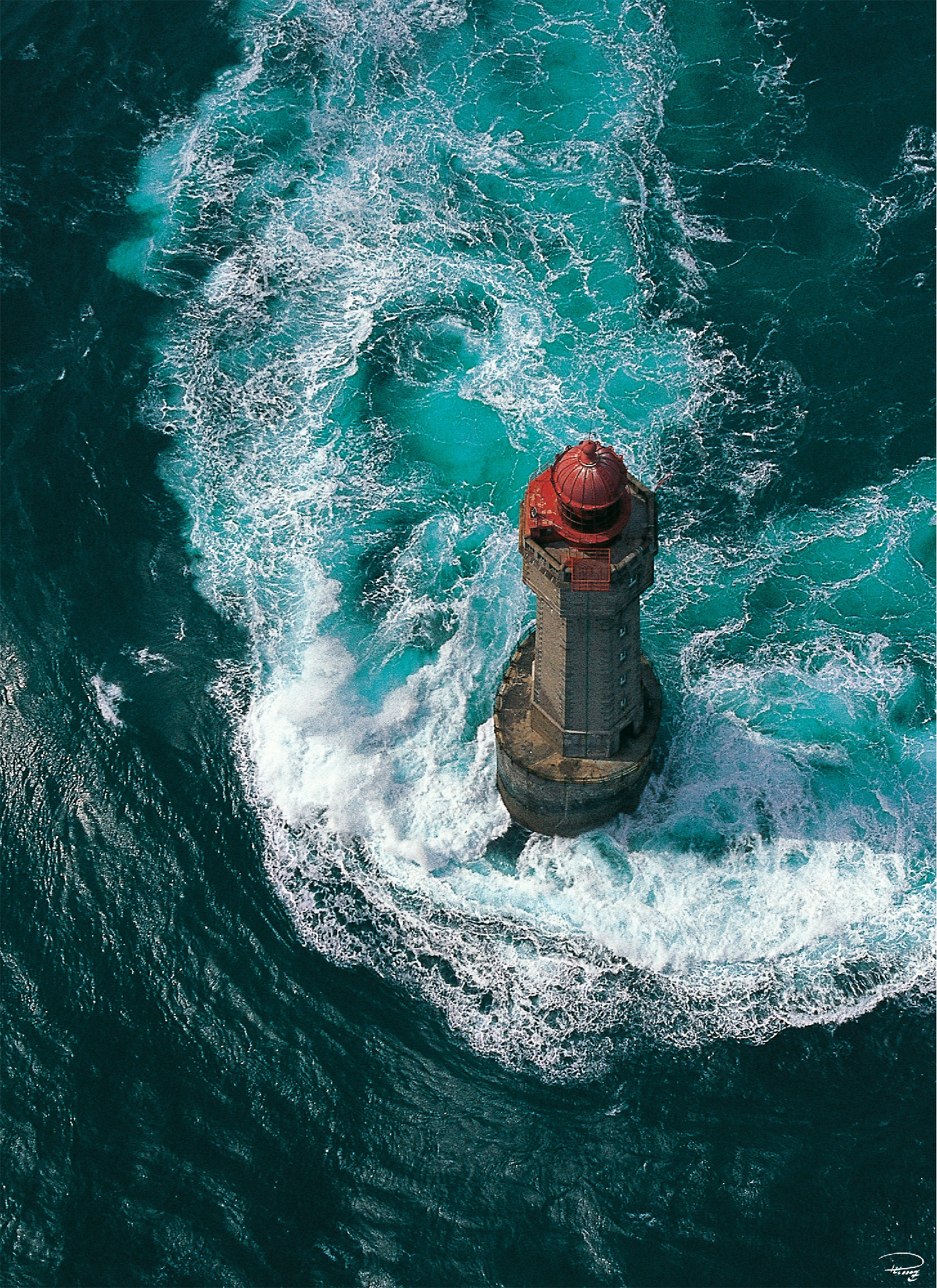 Ce phare en mer, construit entre 1904 et 1911 dans le sud-ouest de Ouessant, marque l'entrée du Fromveur connu pour ses courants violents. Il a été classé au titre des Monuments Historiques en 2017. On le reconnait notamment grâce à sa tourelle rouge qui se détache du vert de la mer en colère.
