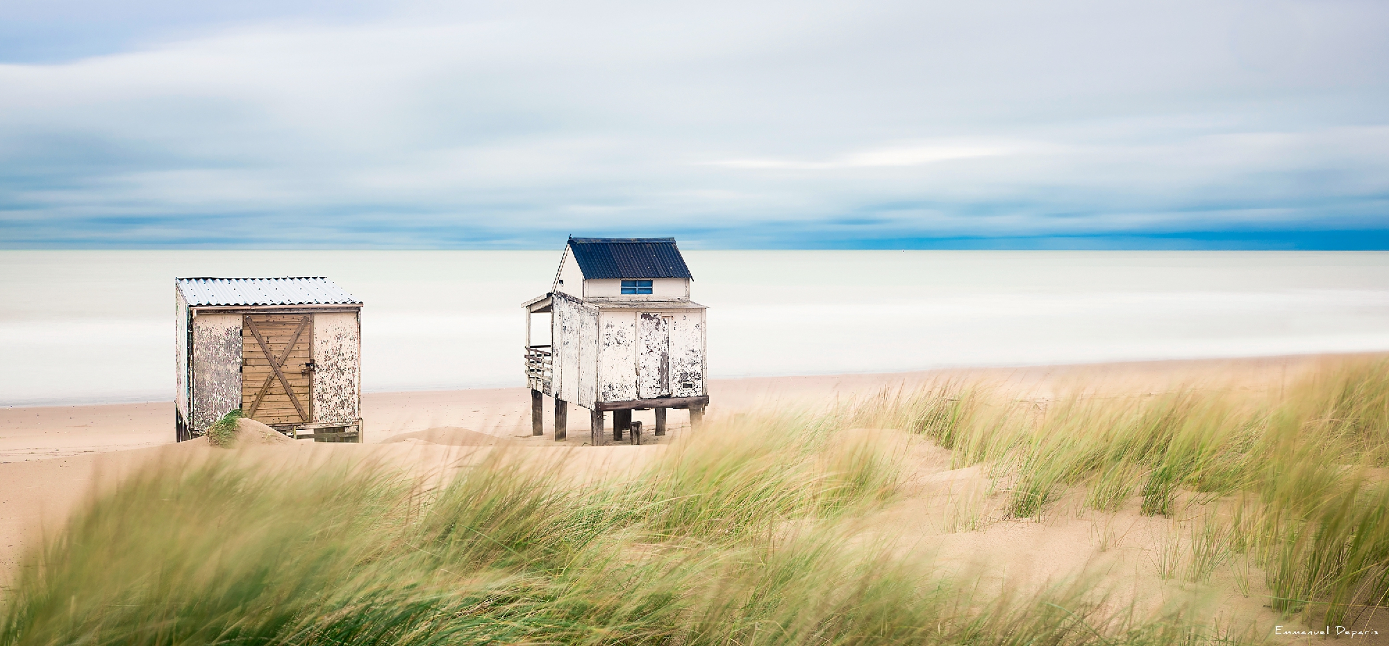 Tout le monde est parti, laissant ces cabanes de plage seules le temps d'une saison. A l'horizon, pas de nuage, une mer d'huile et la dune qui danse bercée par une légère brise. Les plages du Nord sont très photogéniques hors saison !