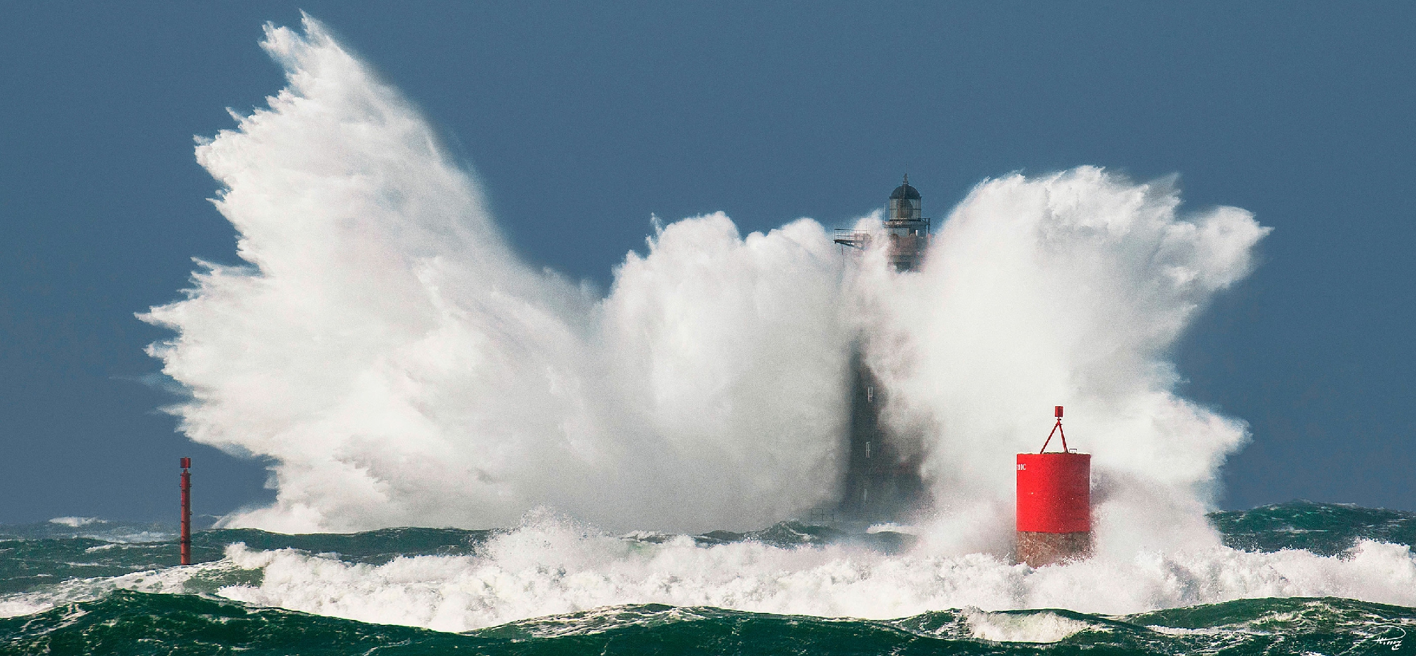 Cette photo du phare du Four a été réalisée depuis la côte d'Argenton dans le Finistère. Lorsque la houle est importante, elle vient frapper de plein fouet la tour du phare du Four, offrant alors un spectacle impressionnant.