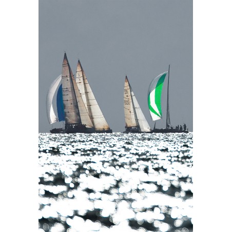Cette photographie de voiliers en régate est disponible en plusieurs formats et finitions :
