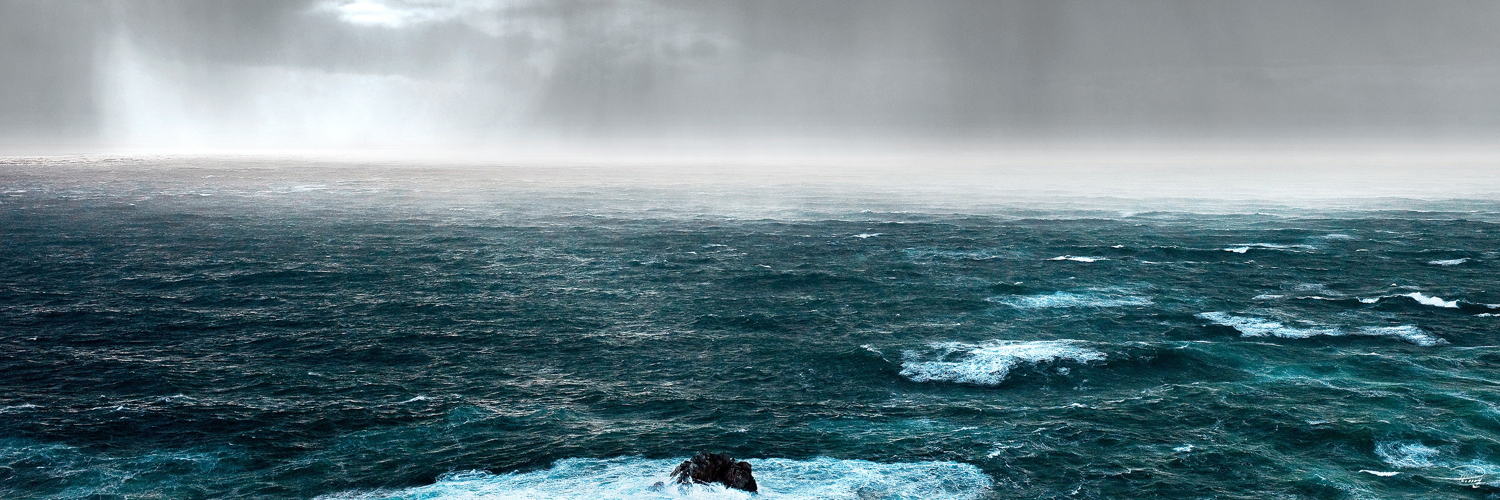 Tempête sur la Mer d'Iroise en Bretagne quelque part entre la Pointe du Van et l'île de Sein.