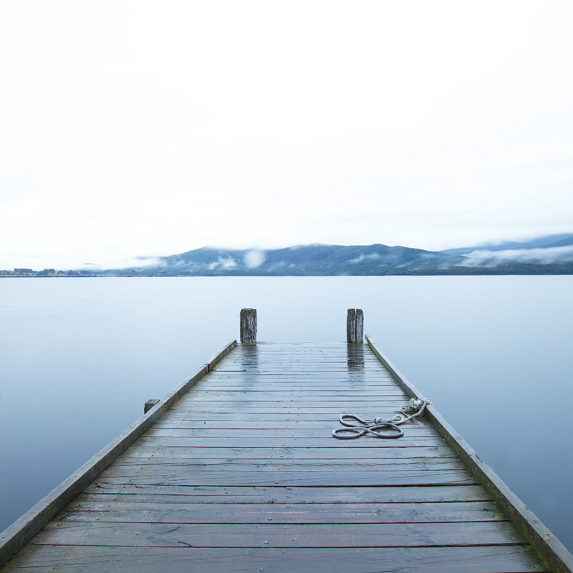 Sur ce ponton du lac Te Anau, second plus grand lac de Nouvelle-Zélande, l'espace laisse libre cours au voyage. Le lac se situe sur l'île du sud de Nouvelle Zélande.