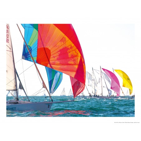 On sentirait presque les embruns, on entendrait presque le bruit du vent dans les voiles ! Vous êtes presque sous le vent de ce bateau au premier plan et vous faites presque partie de la régate ! Il ne vous reste qu'à choisir entre la photo sur toile et le poster photo...