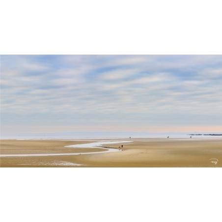 A marée basse, l'estran laisse un espace de liberté pour les amateurs de promenades à pieds, ou à cheval. L'horizon est dégagé, le ciel est bleu pastel. Laissez votre esprit vagabonder dans ce tableau offert par la nature.