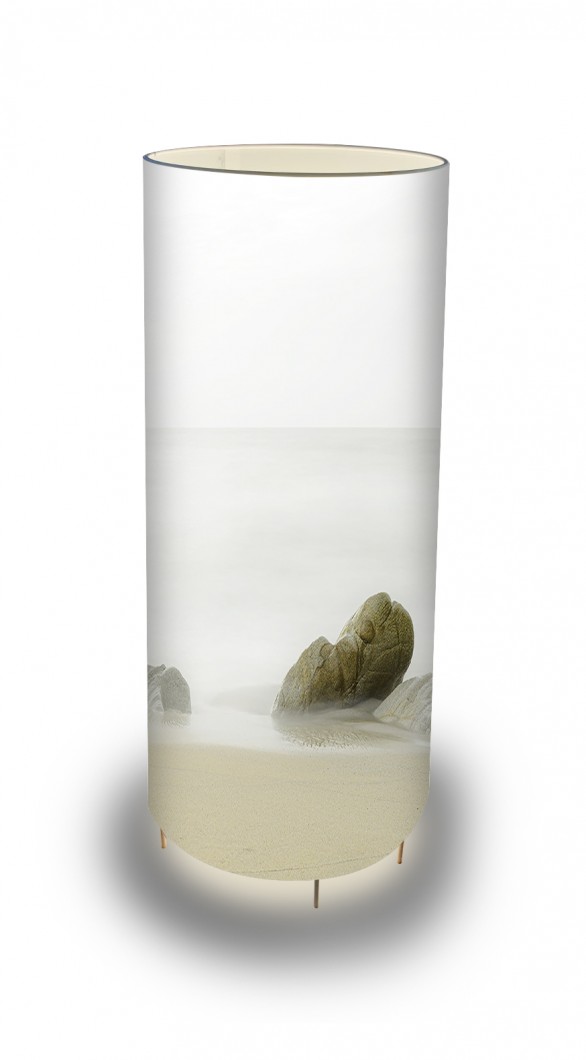 Une jolie lampe à poser, "Une plage sous la brume". L'élégance et la brillance aux couleurs de la mer.