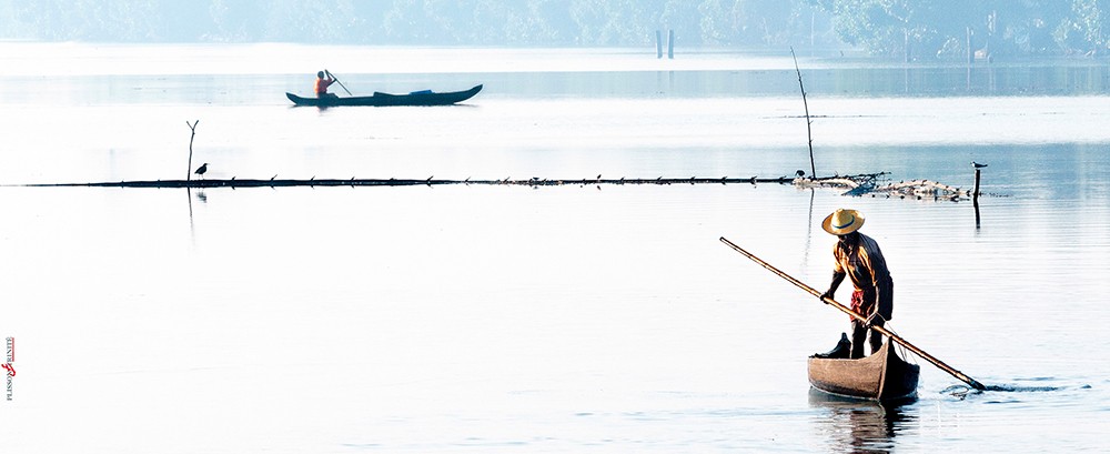 Sur la côte sud du Kerala, en Inde, les pêcheurs trouvent de quoi subsister dans les eaux des backwaters. Cette photographie est imprimée sur un mug en céramique, et vendue dans une jolie boite en carton.