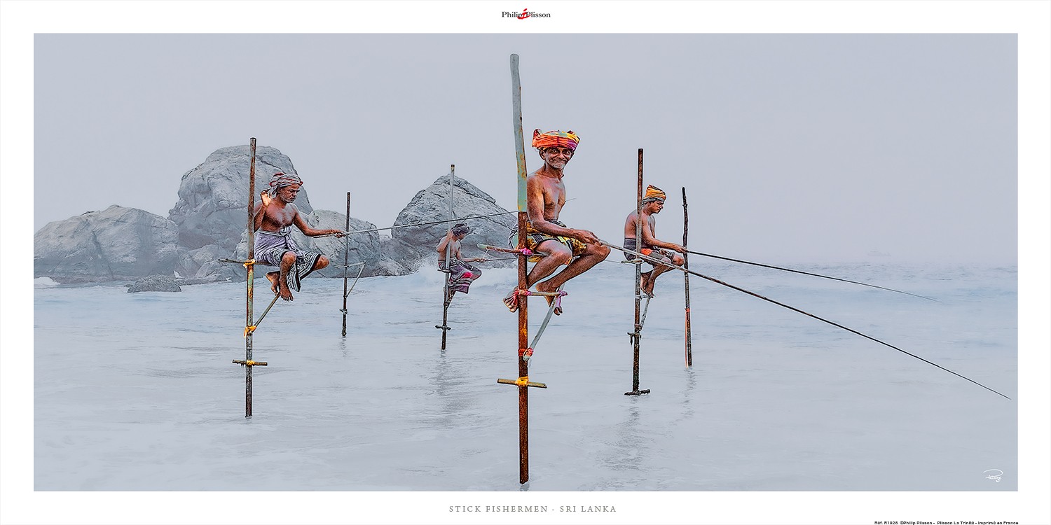 Au sud du Sri Lanka, les pêcheurs montent sur leurs poteaux chaque matin vers 5 heures. Ils y restent perchés pendant 3 heures et reviennent en fin d'après-midi pour attirer les poissons. Une technique de pêche qui fait le plaisir des photographes, aux plus belles heures du matin ou de la fin de journée.