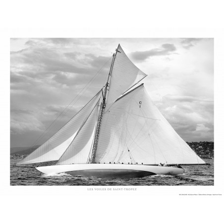 Mariquita, ladybird in Spanish, is a gaff cutter of the JI 19 meters Class. She was designed and built in 1911 by the architect William Fife III. Mariquita participates in regattas in the Mediterranean, and every year she demonstrates her elegance and perfectly designed lines. This black and white portrait of a legendary yacht will decorate your home with class.