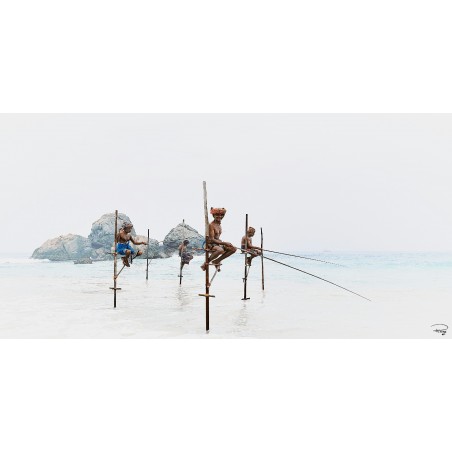 About ten meters from the shore, like real tightrope walkers, these fishermen on stilts are waiting for the fish to come to them. They have learned to cope with the powerful waves of the Indian Ocean that do not allow them to fish by the sea. At dawn, or at the end of the day, each one joins his own stilt, wrapping his stuff around his head, and gets into his place, as if suspended above the swell.
