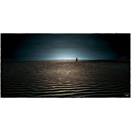 A winter walk on a Breton beach at low tide. The light is low and the drawings that the sea left behind look like a sandy sea. This photograph illustrates our need for the sea, for loneliness sometimes, and above all for faraway horizons!