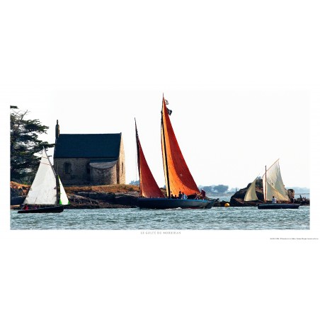 The nautical event, La Semaine du Golfe, brings together every 2 years, in the Gulf of Morbihan, many traditional sailboats. Here the old rigs sail in front of the island of Boédic.