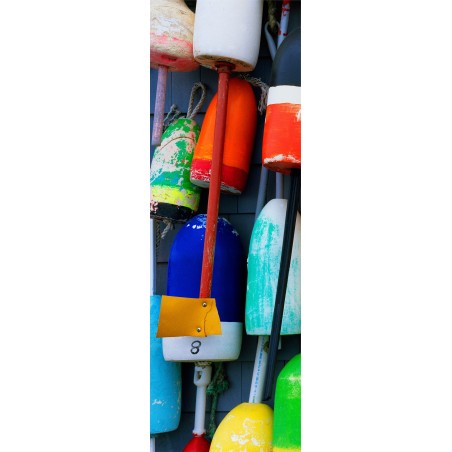 Each fisherman has his own color and pattern of buoy which has been passed down from generation to generation. From traditional reds, to bright blues, greens or pinks to electric yellows. The brighter the buoy, the more likely it will be visible through the thick fog that often floats on the banks of the Maine in summer. A natural decoration for the pleasure of the photographer.