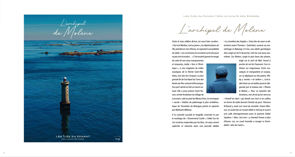 "After 77 books devoted to the sea over the last 40 years, I'm delighted to share with you this long-form book about the 15 islands and the most beautiful lighthouses that bathe in the setting sun every evening. I discovered some of these islands when I was very young and watched them slowly build up on the horizon. To make my collection complete, I dared to add another island, a peninsula that became an island again in 2015... Mont-Saint-Michel" - Philip Plisson