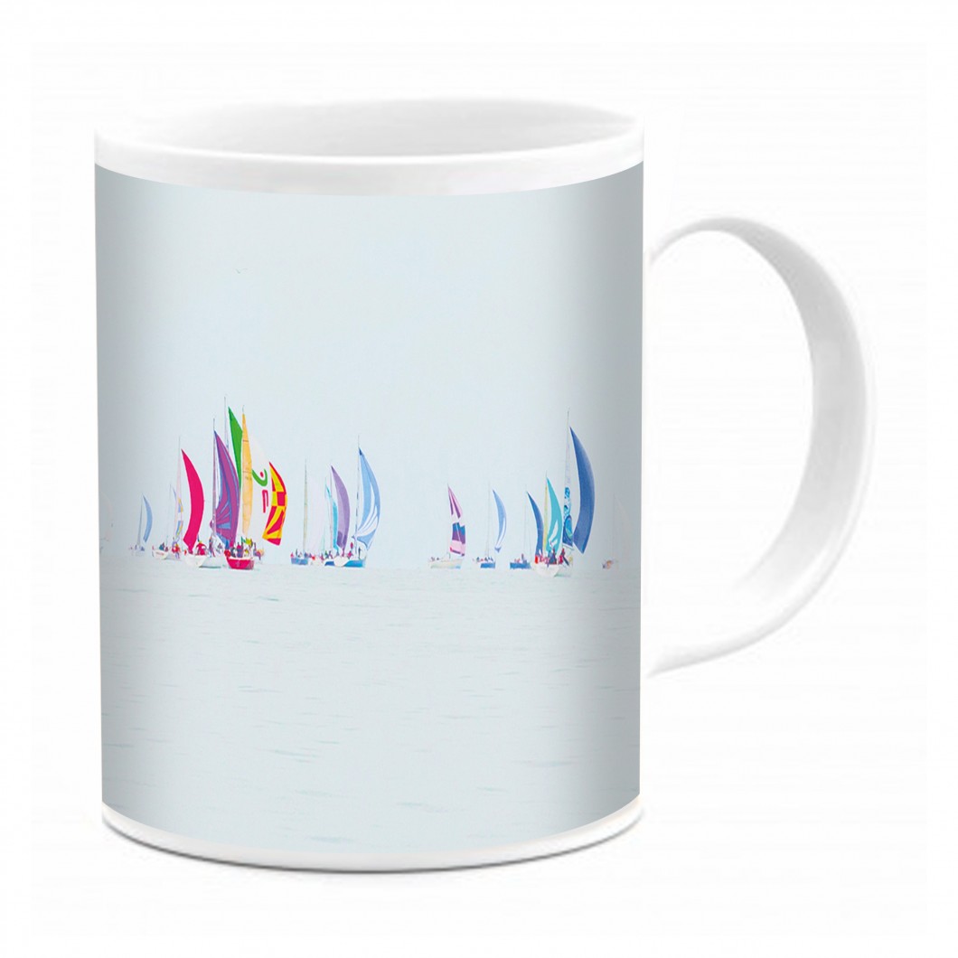 The winter training regattas in Quiberon Bay bring together a large fleet of sailing boats. This photograph is printed on a ceramic mug, and sold in a pretty cardboard box.